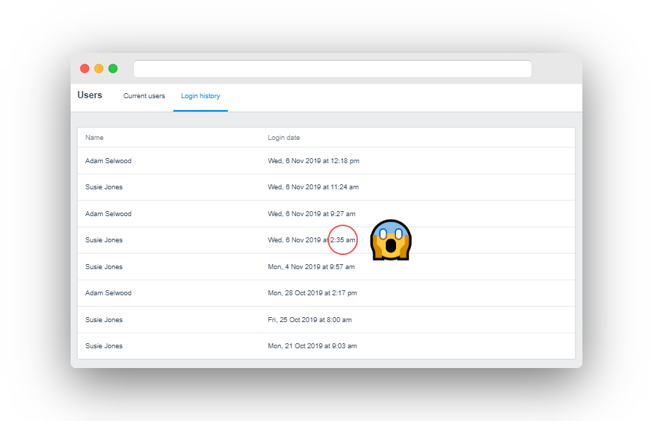 In the Users area of Organisation Settings the Login History tab will show you when a user has logged in. The detail in this report is limited to names and times of your team logging in which means you can’t get too much of this report. Some things you should look out for are: